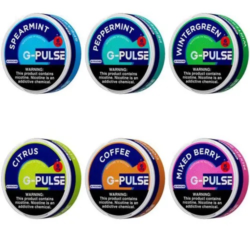 Os sachês de nicotina G-Pulse utilizam tecnologia QCE para liberação rápida, controlada e prolongada de nicotina. Disponíveis em potências de 6 mg, 10 mg ou 15 mg, cada pacote contém 20 sachês finos.